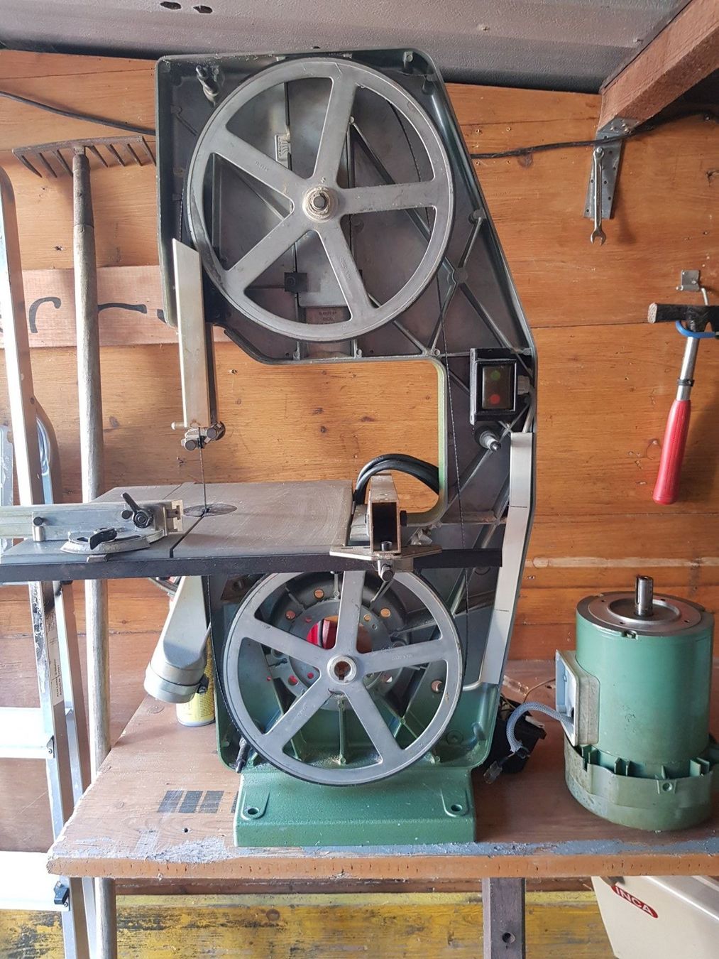 Bandsäge - Passt sich individuell jedem material an, sägt saubere kurven in unterschiedlichste werkstoffe und überzeugt durch hohe laufruhe. Stabiler tisch mit plangefräster arbeitsfläche, nut für gehrungsanschlag (für gehrungsschnitte bis 45° schwenkbar). Ideal für ambitionierte heimwerker geeignet; A bandsaw (also written band saw) is a power saw with a long, sharp blade consisting of a continuous band of toothed metal stretched between two or more wheels to cut material. Stabile bauweise, rollendurchmesser 350 mm, schnitthöhe 235 mm. Passt sich individuell jedem material an, sägt saubere kurven in unterschiedlichste werkstoffe und überzeugt durch hohe laufruhe